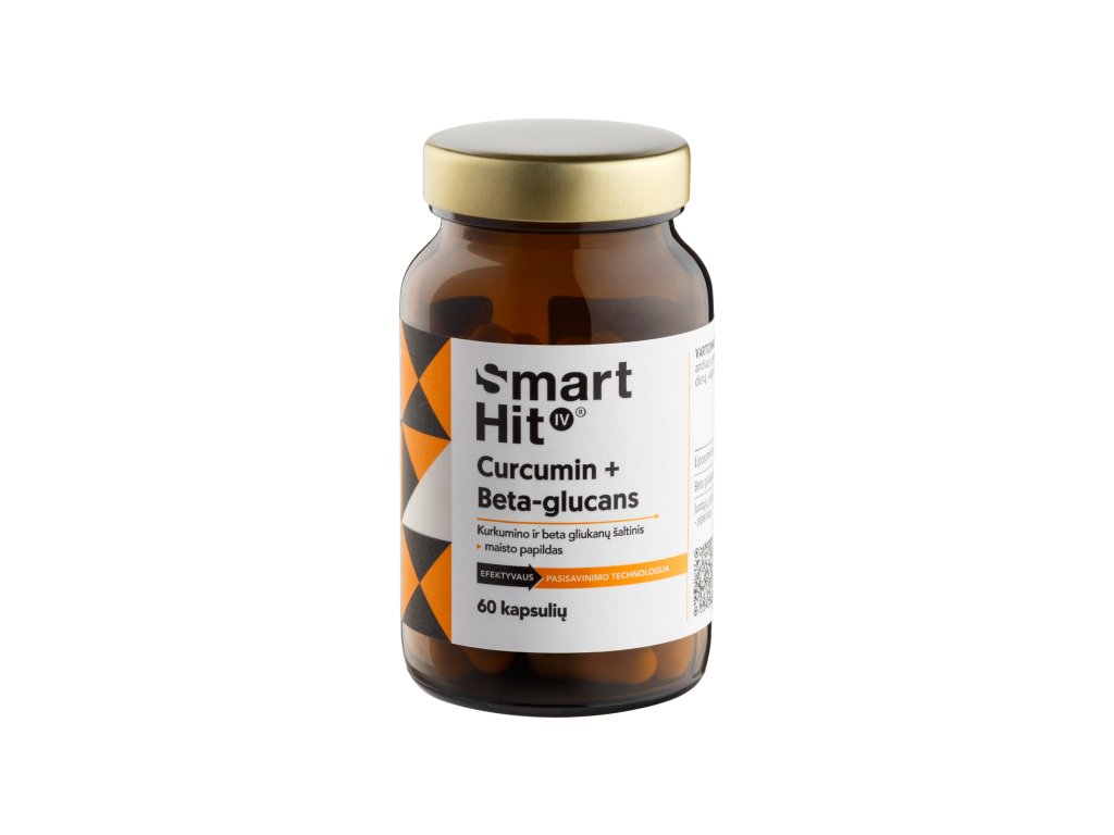 SmartHit Kurkumín + Betaglukány spája tradičnú silu kurkumy, vedecky overené beta-glukány a piperín z čierneho korenia. Vďaka patentovanej technológii Miosol® sa účinné látky vstrebávajú až 5× efektívnejšie, čo znamená maximálnu podporu imunity, vitality a ochrany organizmu.